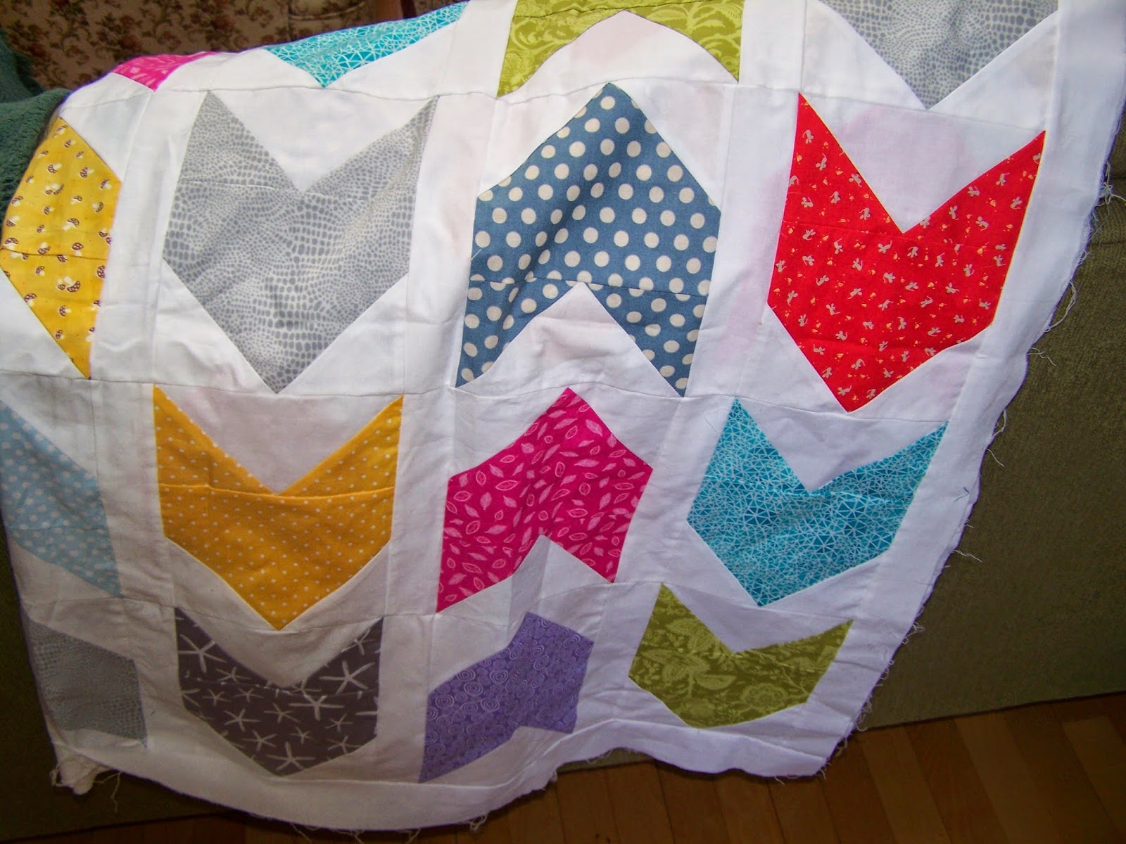 And for number 5 I've got my half hexagon quilt, started three weeks ago. It's in the piecing the blocks together stage.