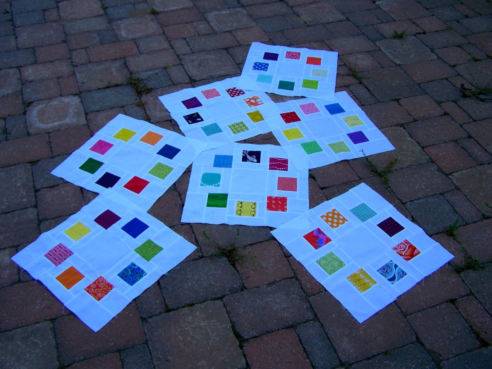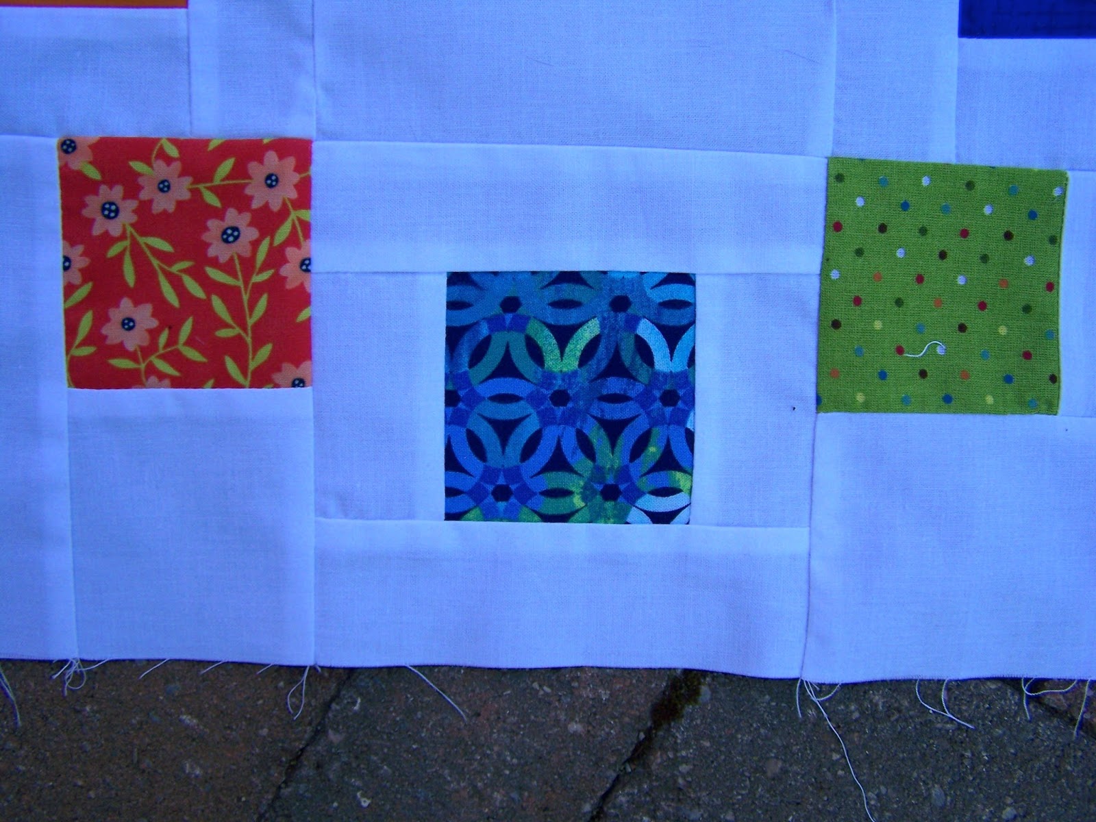 I kept myself interested through the production sewing by sewing the blocks into rows every four blocks completed, and by sewing the rows together when I got them done.