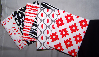 I picked this grouping because I thought I had enough grey and black for the background and frames. When I looked at the fabric requirements though, I didn't so we took a field trip to the local quilt shop. That was fun. I got a fair bit of progress done despite, the trip to the shop and the time spent helping Cindy wrestle batting into a tube to make a nesting bed for her grand daughter.
