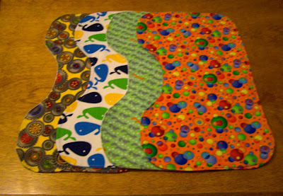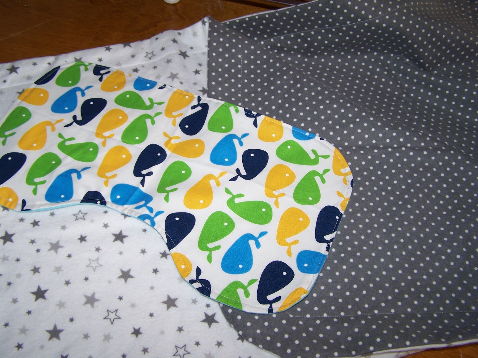 In case you can't tell those are burp pads in the first and second photo and a burp pad on top of a receiving blanket in the third photo. This little grouping above represents my second finish of the 2016 finish along first quarter which you can read about here if you are so inclined.