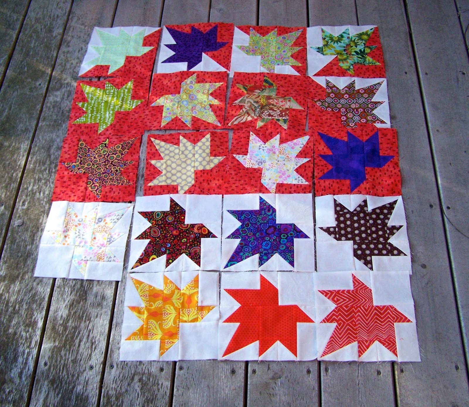 Community outreach co-ordinates the making of approximately 100 quilts each year, although this year the President's Challenge was to make comfort quilts and we ended the year with 168 quilts. The quilts go to the Sexual Assault/Domestic Violence unit, housed at the local hospital. Guild members can contribute by making individual blocks, by making a quilt top, by quilting tops made by others , or by donating a complete quilt. I matched this top up with batting and a backing and put it with the others waiting to be quilted.